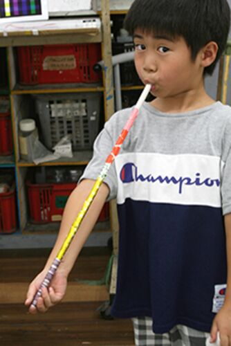 ☼7月25日、8月1日 夏の特別教室 ☼ ☀ 暑い夏がやって来ました!今年の夏の特別教室が始まりです! 児童の教室は「あぶない教室」と題して、普段とは違ったちょっとあぶない課題にチャレンジ! ❁ 7/25 武器作りに挑戦だ!❁ ちっちゃい子たちは吹き矢を作って的…